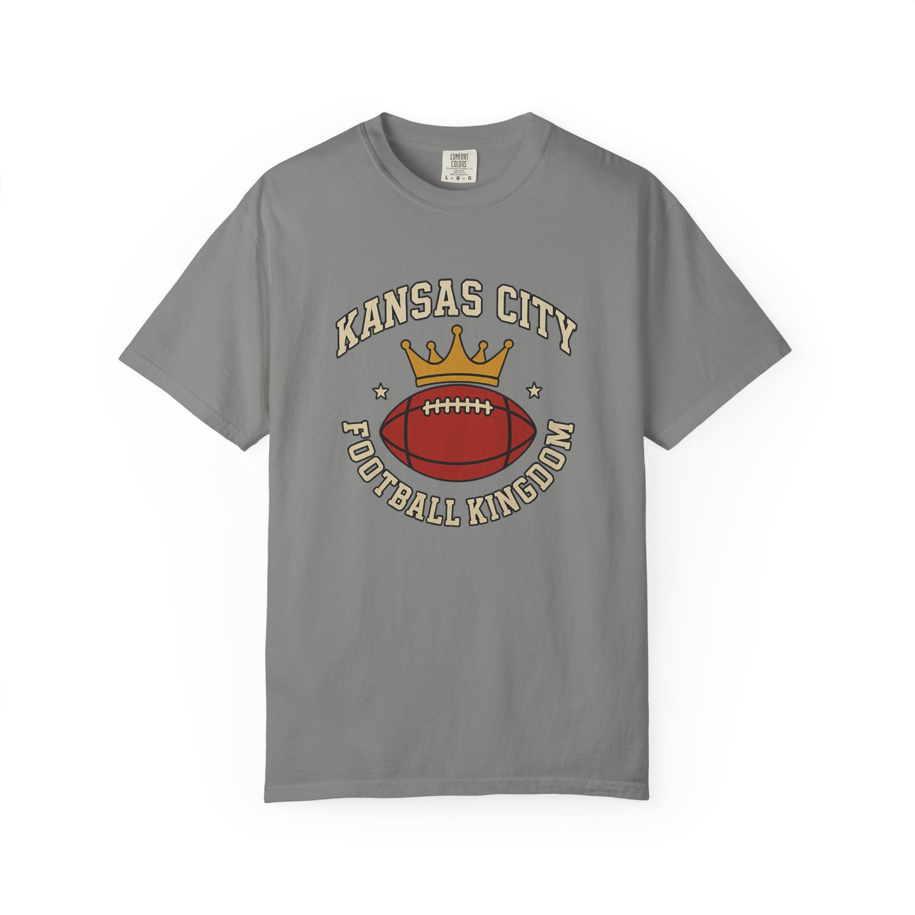 All hail the Kingdom. Celebrate your Kansas City pride in royal style with the Football Kingdom T-Shirt — featuring a crowned football graphic and vintage collegiate lettering. Whether you’re tailgating, cheering from the stands, or watching from home, this bold tee delivers the perfect mix of grit, glory, and game-day energy.