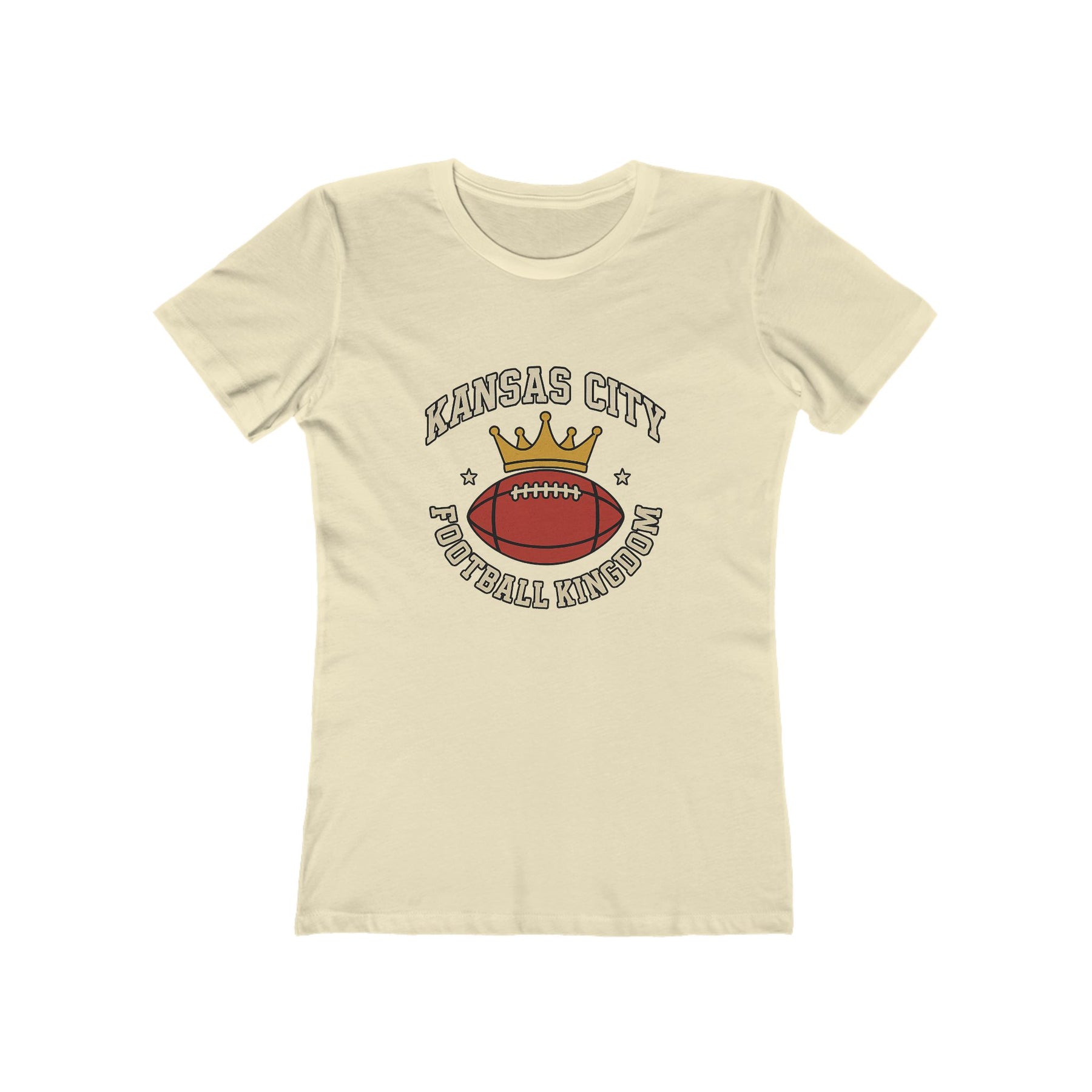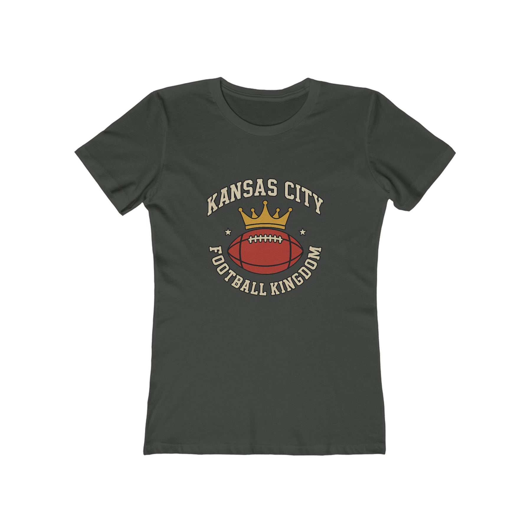 Rule game day in style with our Kansas City Football Kingdom T-Shirt. Featuring a bold football graphic crowned with a golden emblem, this tee celebrates the passion and pride of KC fans everywhere. With its vintage-inspired design and standout lettering, it’s the perfect shirt for cheering your team to victory.