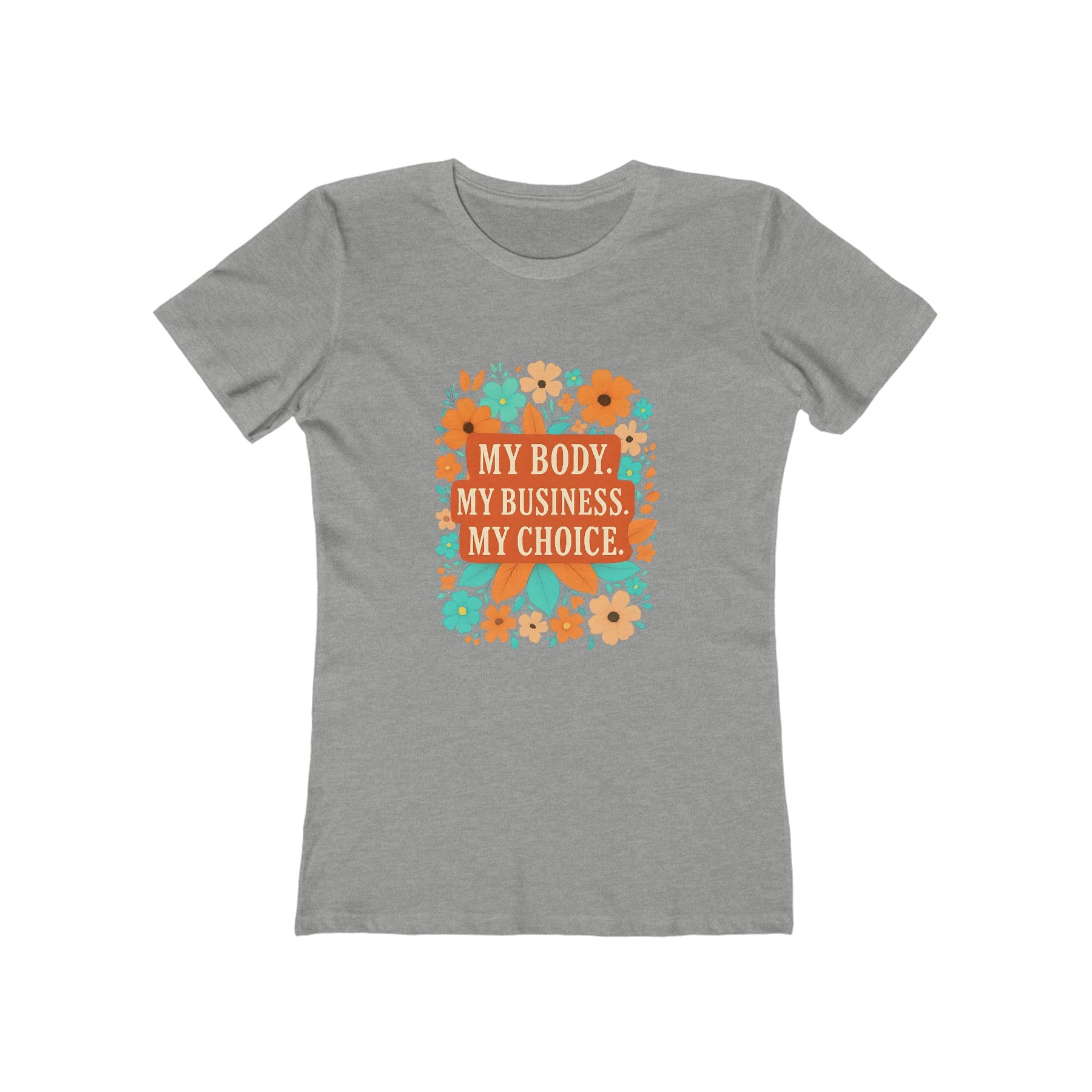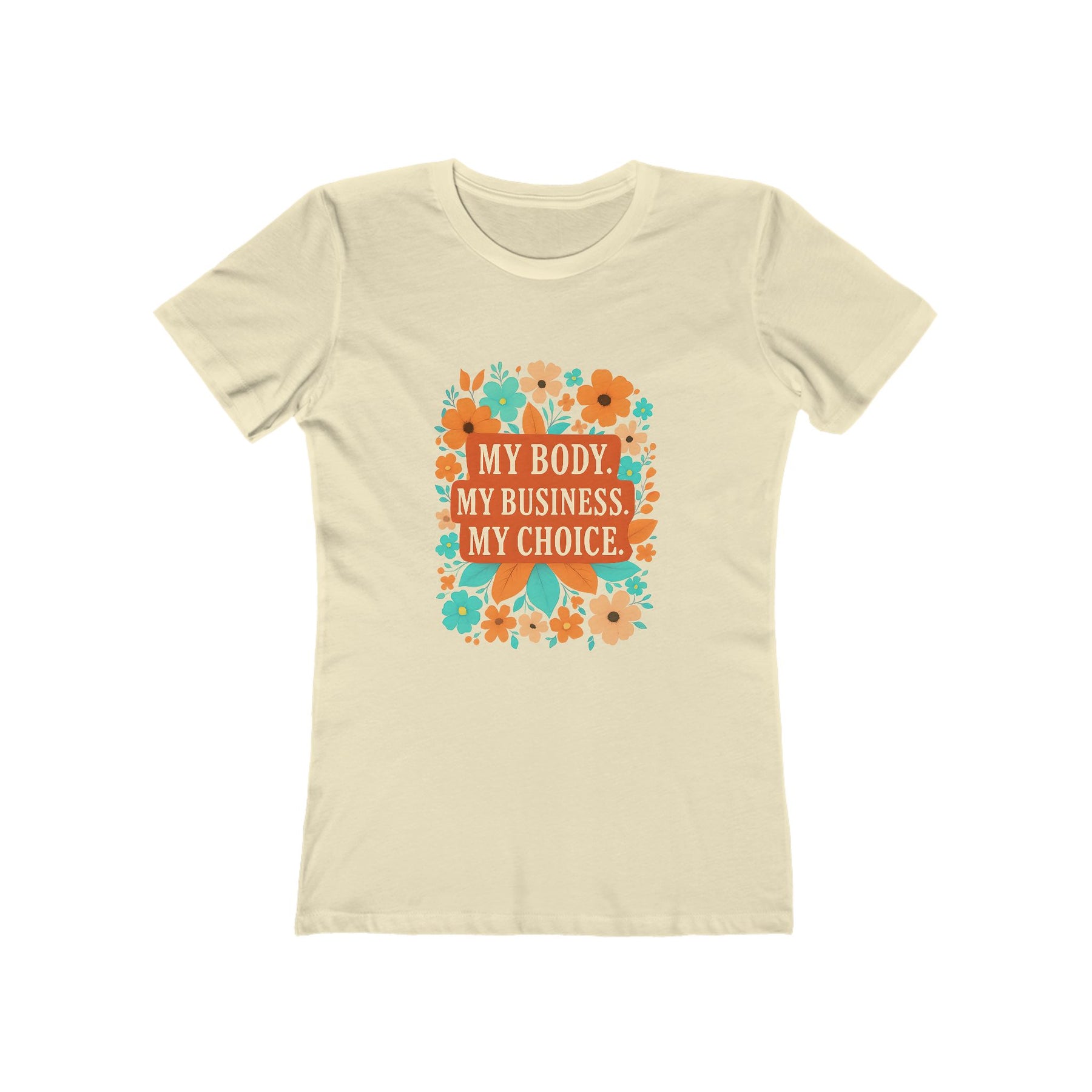 Stand proudly for autonomy and empowerment with the My Body. My Business. My Choice. T-Shirt. Featuring a bold floral design that frames its empowering message, this tee celebrates individuality, strength, and the fight for reproductive rights. The mix of warm orange and teal blooms adds a soft yet striking contrast—making it both beautiful and unapologetically strong.