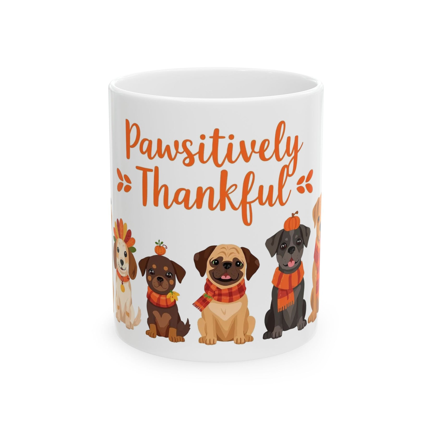 Pawsitively Thankful Fall Dog Mug - Cute Thanksgiving Coffee Cup