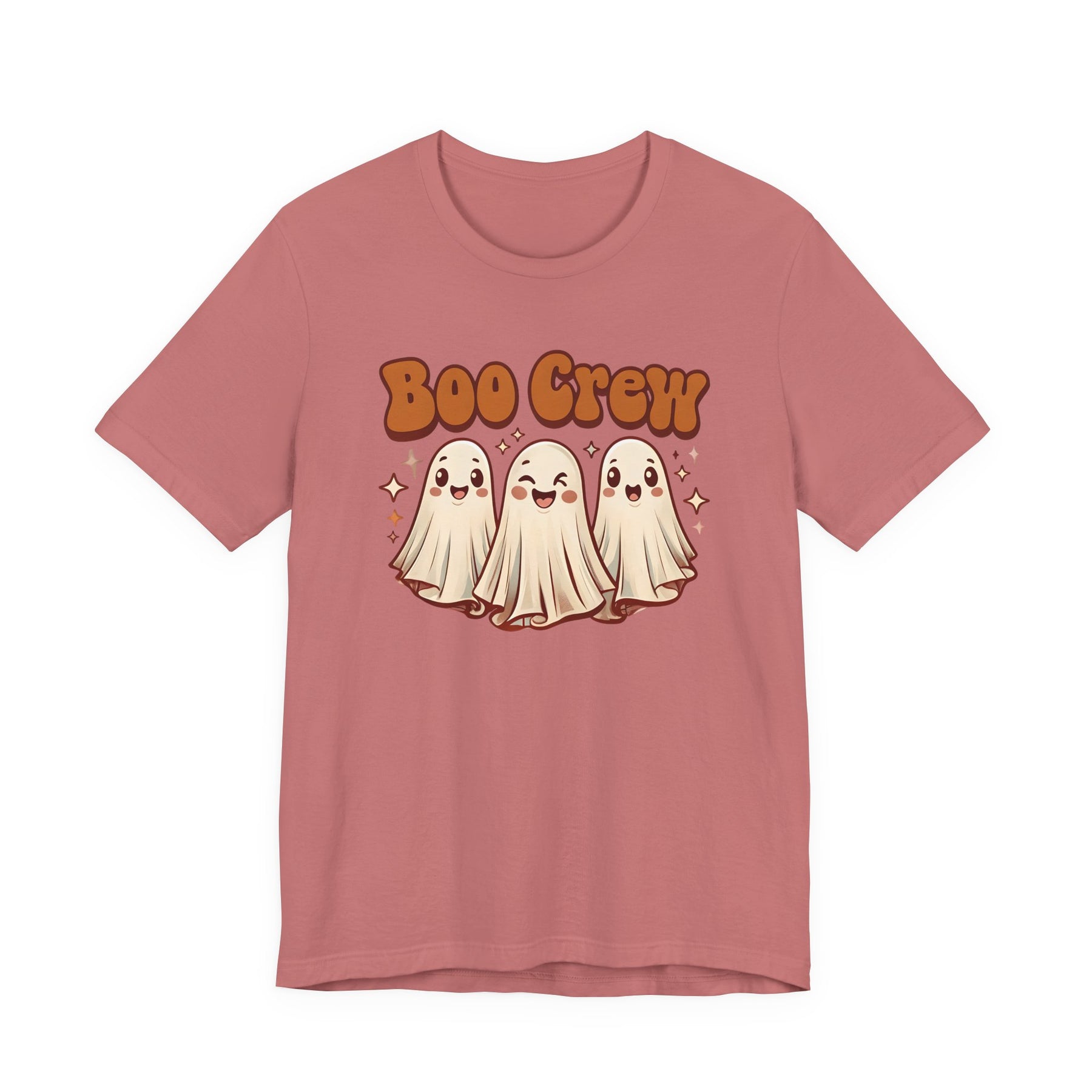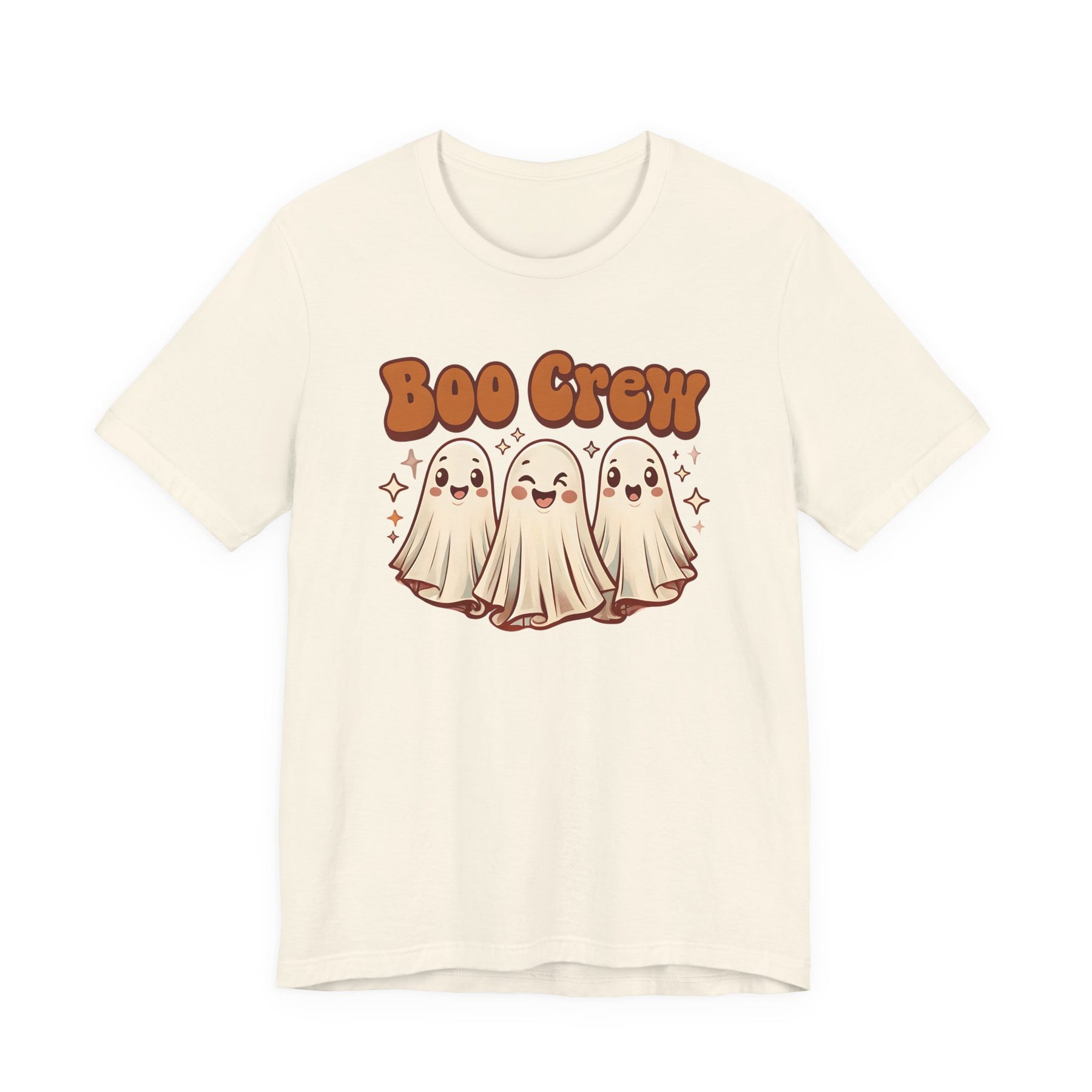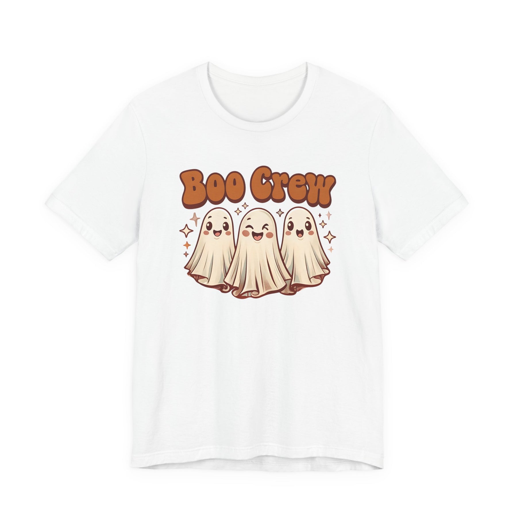Get ready to haunt in style with our Boo Crew Halloween T-Shirt – the perfect blend of cute and spooky! Featuring three adorable cartoon ghosts in a retro 70s-inspired design, this tee is perfect for fall fun, pumpkin patch trips, Halloween parties, or cozy nights in. The warm earthy tones and playful “Boo Crew” text make it a must-have for ghost lovers and spooky season enthusiasts alike.