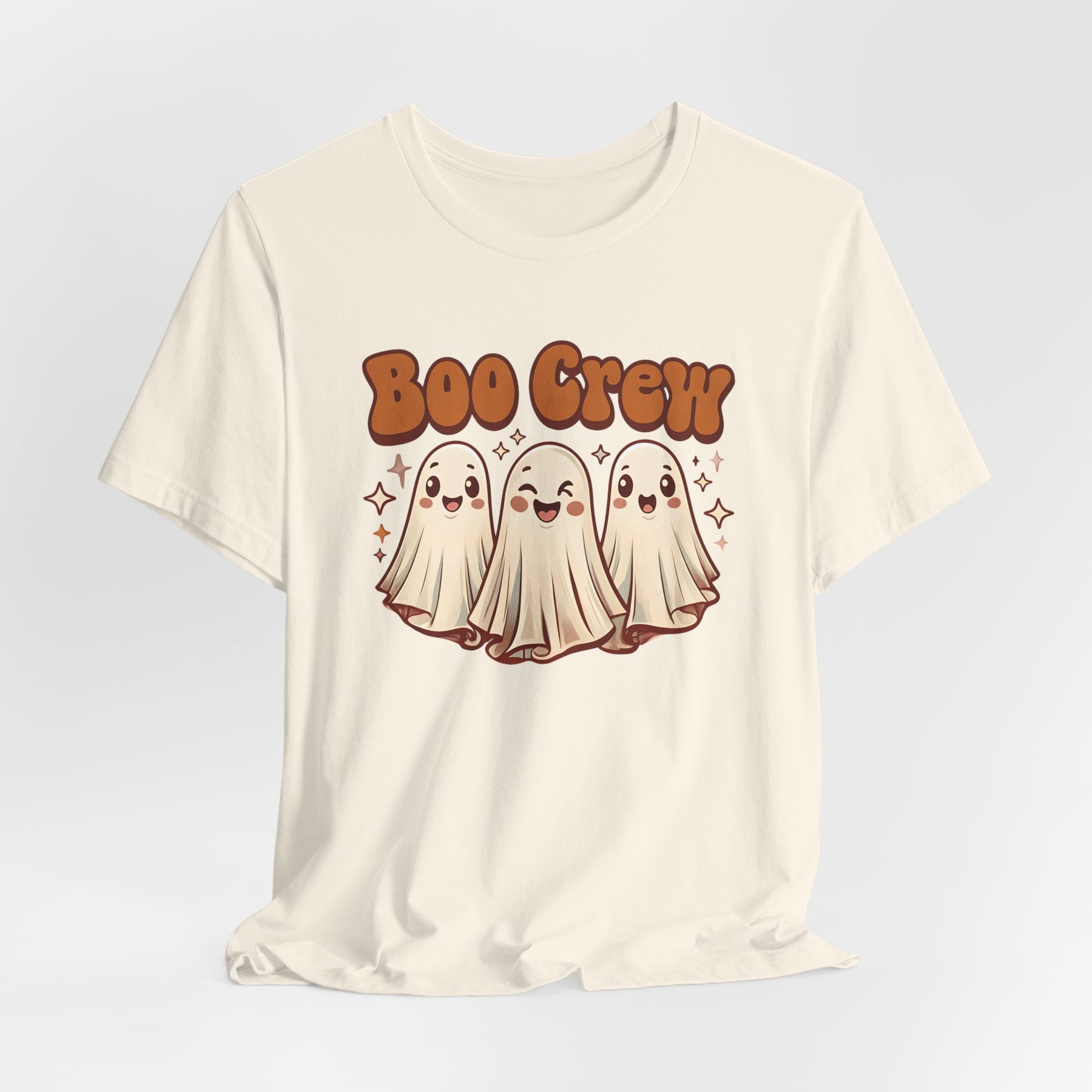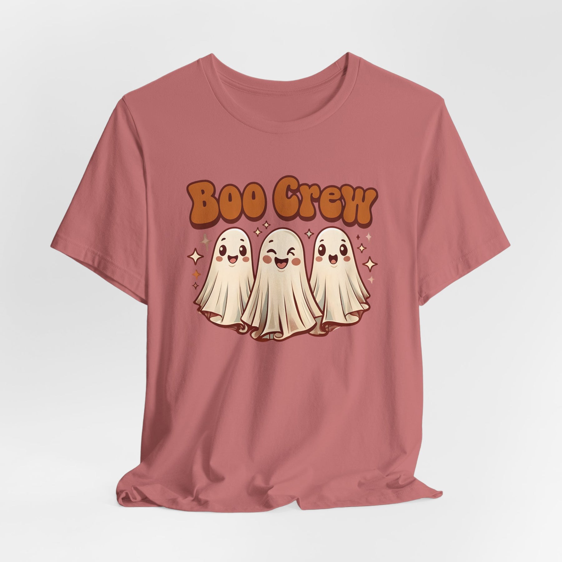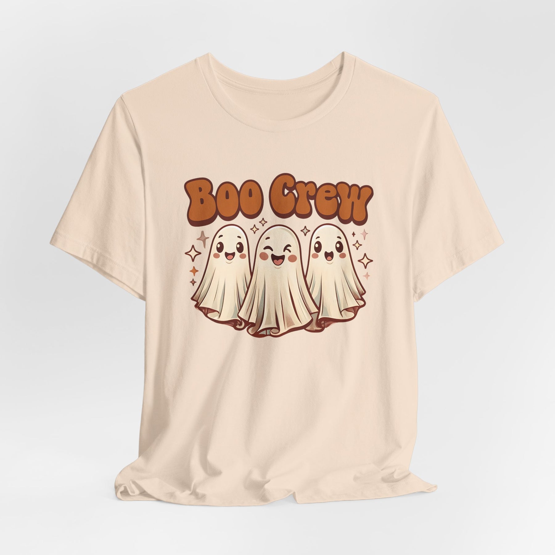 Get ready to haunt in style with our Boo Crew Halloween T-Shirt – the perfect blend of cute and spooky! Featuring three adorable cartoon ghosts in a retro 70s-inspired design, this tee is perfect for fall fun, pumpkin patch trips, Halloween parties, or cozy nights in. The warm earthy tones and playful “Boo Crew” text make it a must-have for ghost lovers and spooky season enthusiasts alike.