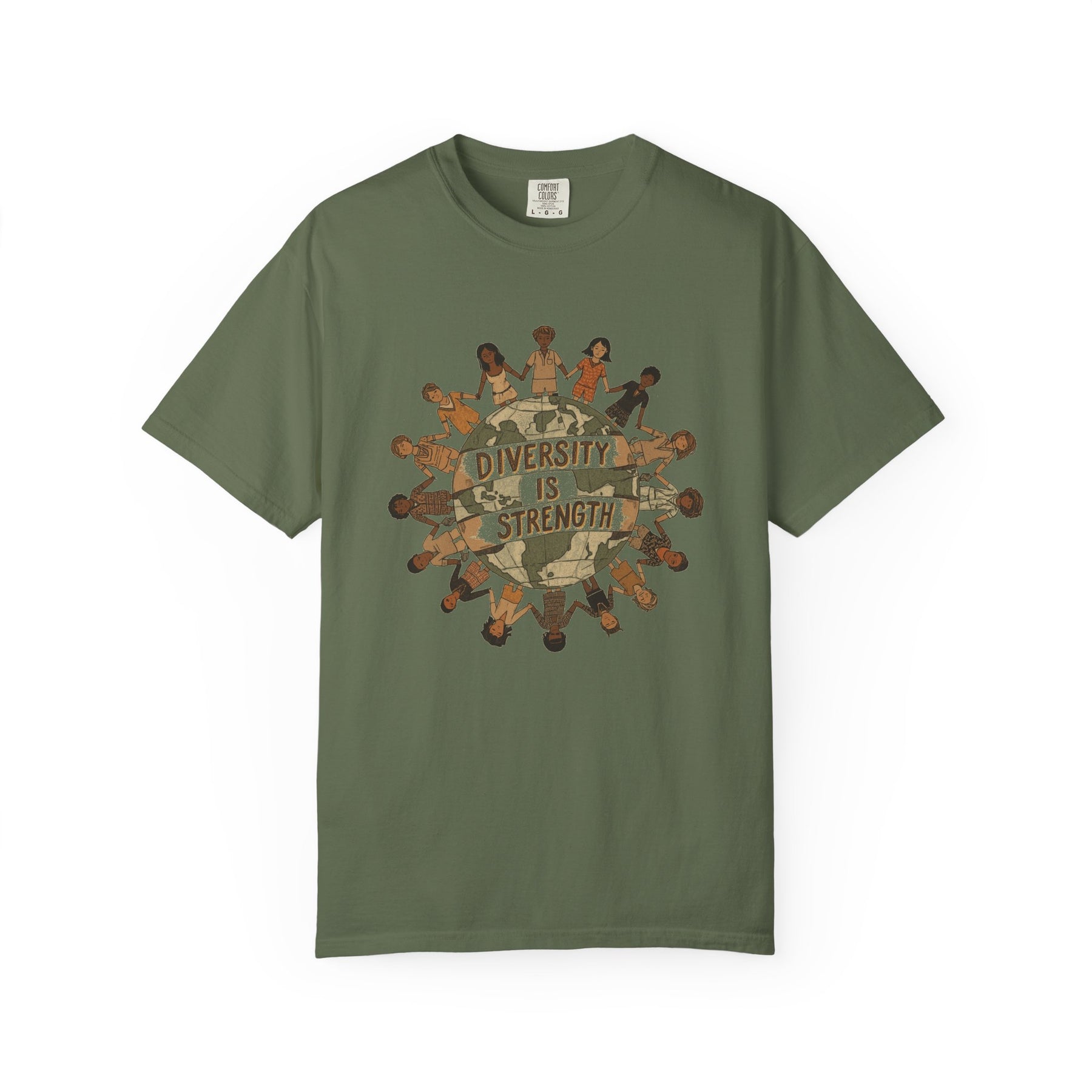 Celebrate unity and inclusion with the Diversity Is Strength T-Shirt. Featuring a bold graphic of people from all backgrounds joining hands around the globe, this tee serves as a powerful reminder that true strength comes from our differences.