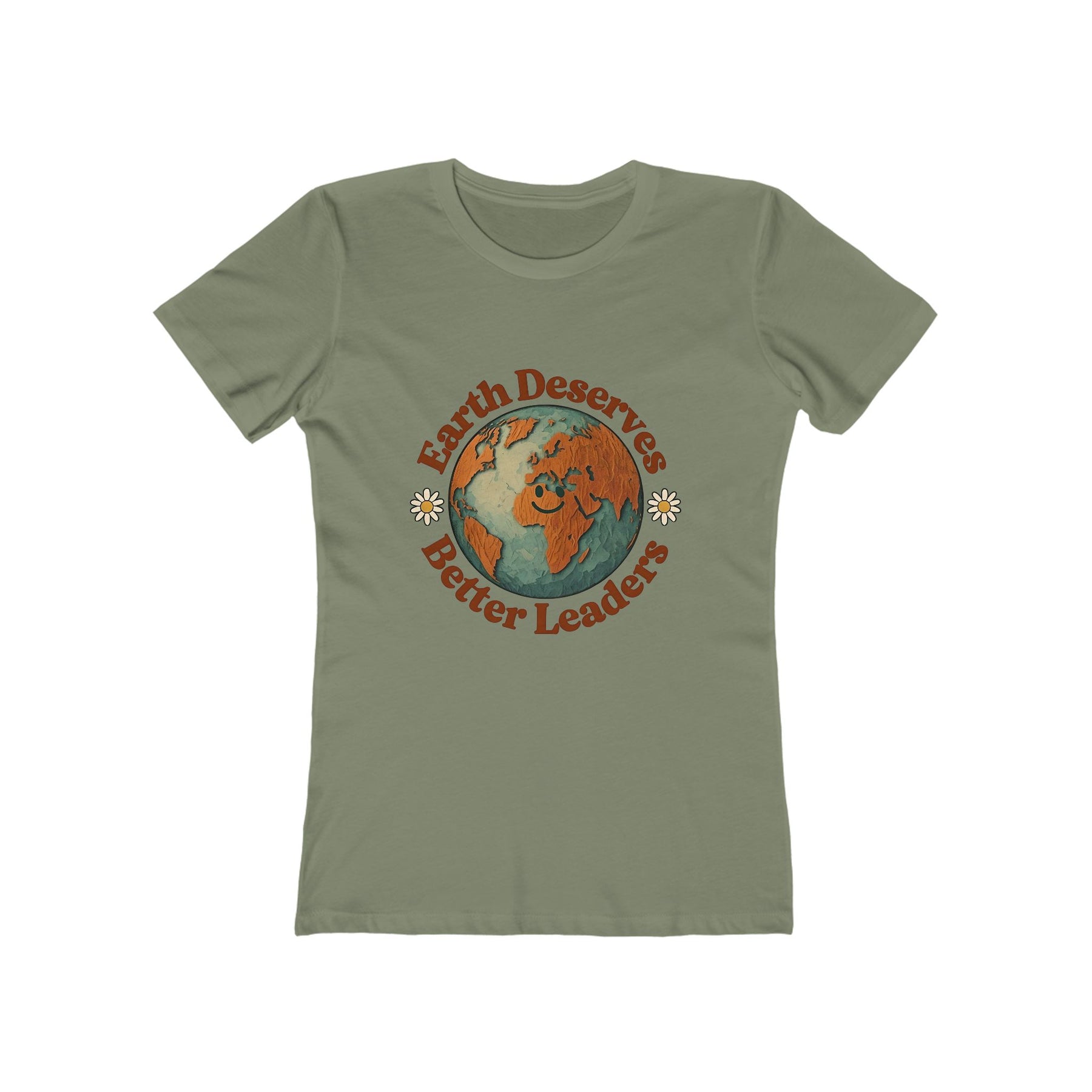 Make a bold statement for the planet with our Earth Deserves Better Leaders T-Shirt. Featuring a retro-inspired globe design with floral accents, this activist tee is perfect for those who believe in sustainability, accountability, and a brighter future for our world.