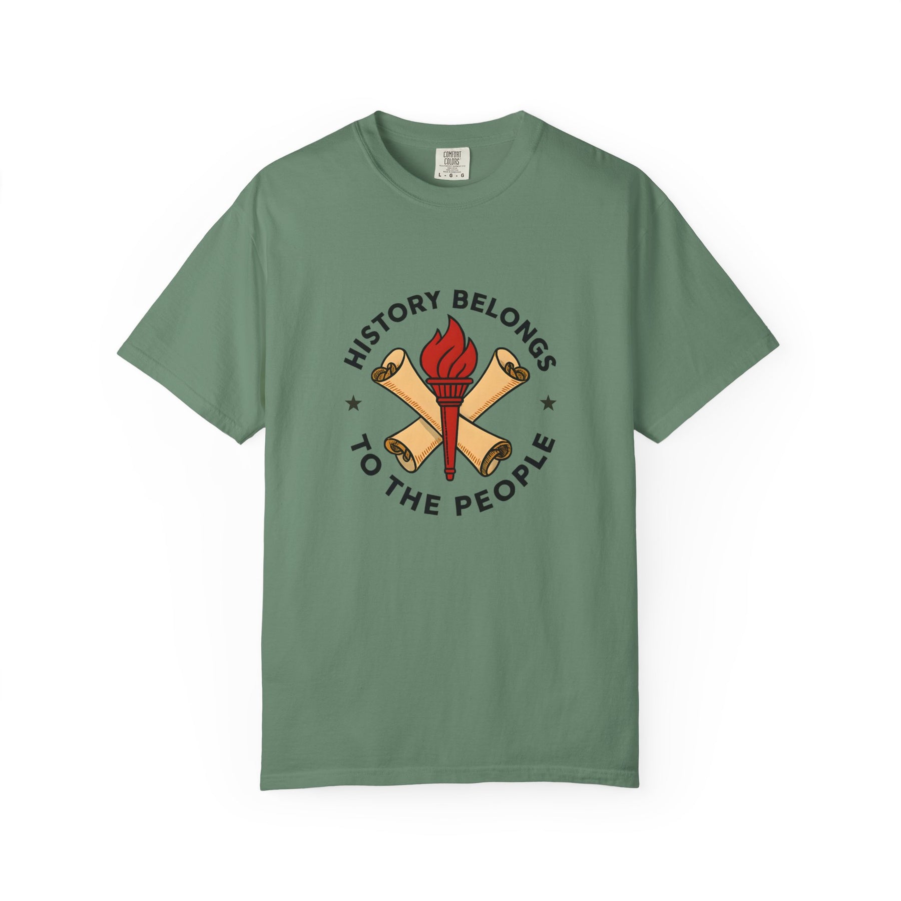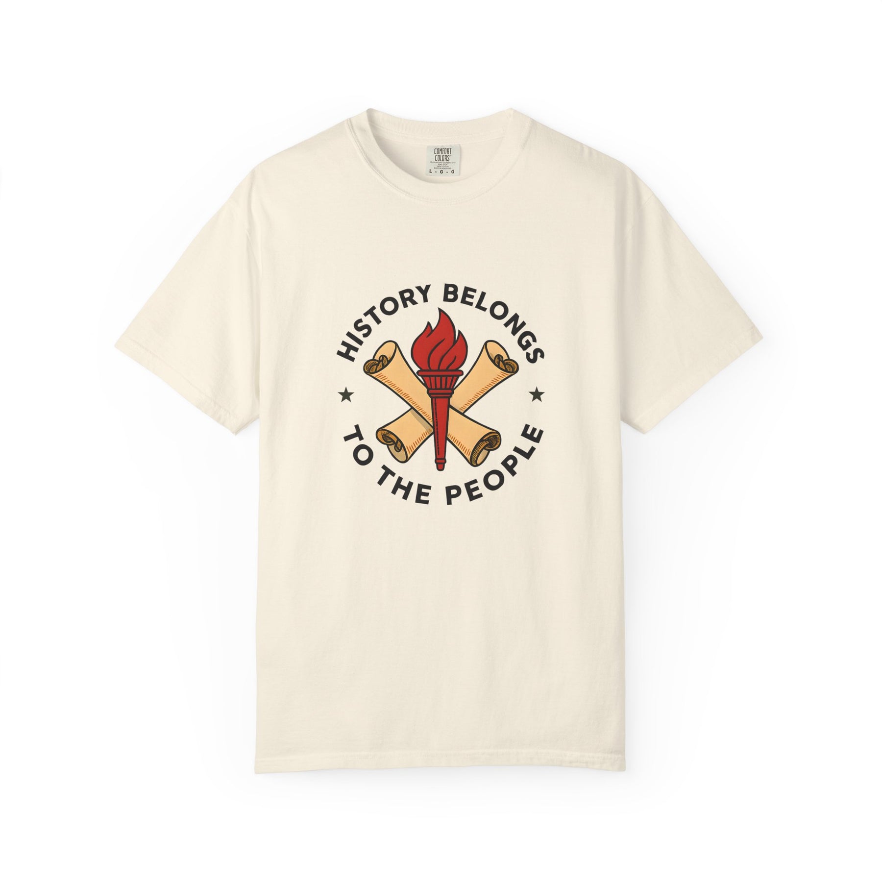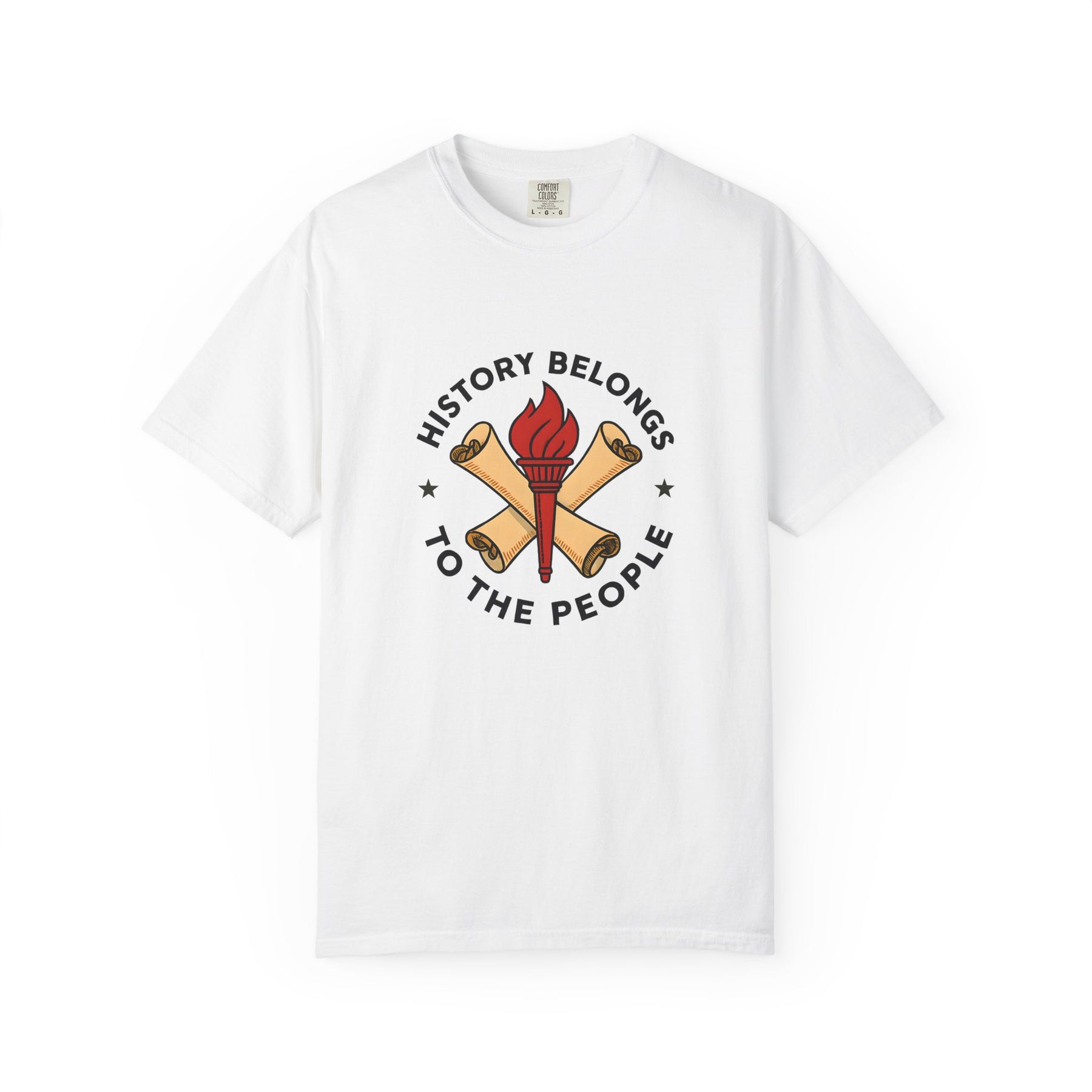 Stand proud with the History Belongs to the People T-Shirt — a bold design featuring a torch and scrolls symbolizing knowledge, truth, and collective power. This tee is made for history lovers, activists, museum supporters, and anyone who believes in protecting truth from censorship.