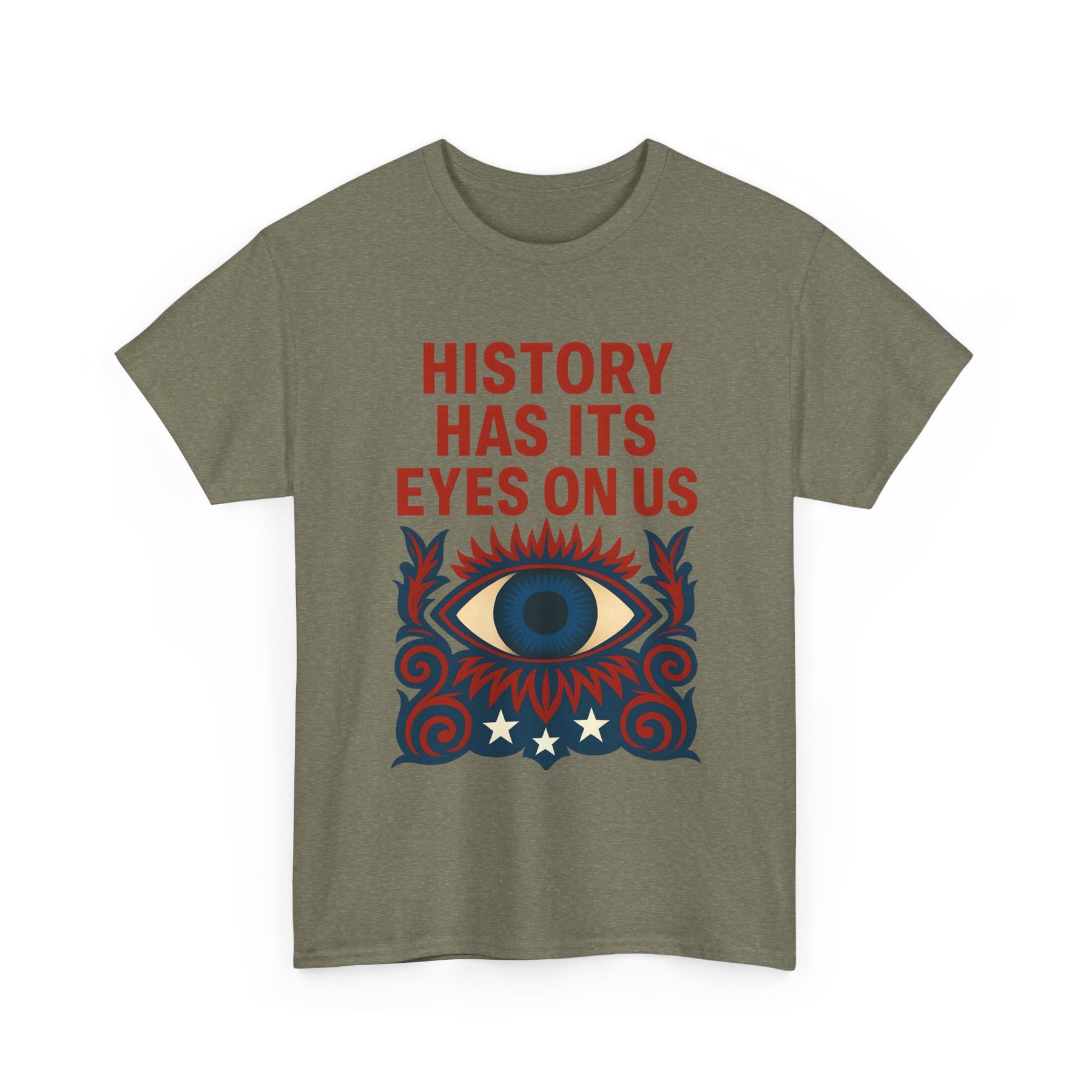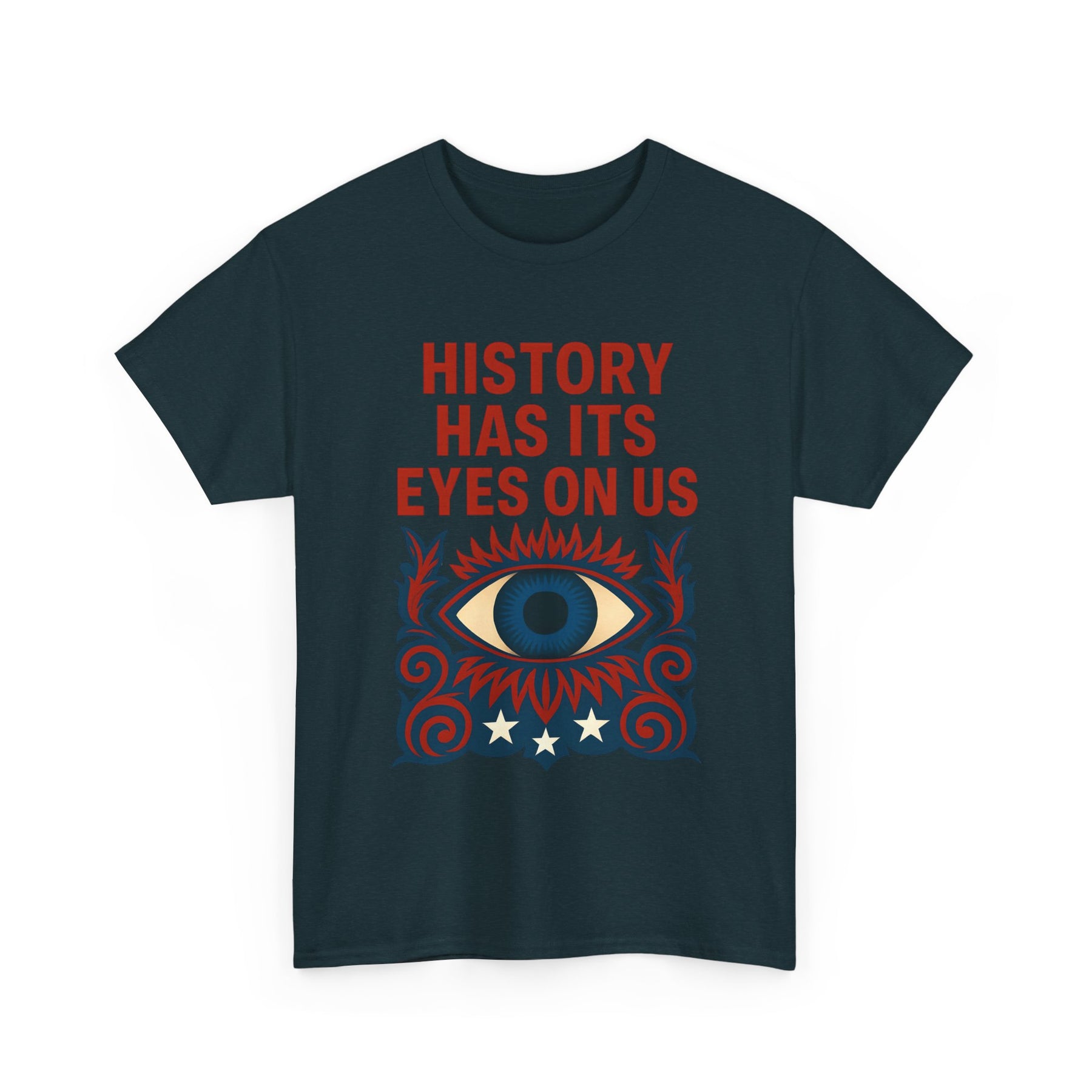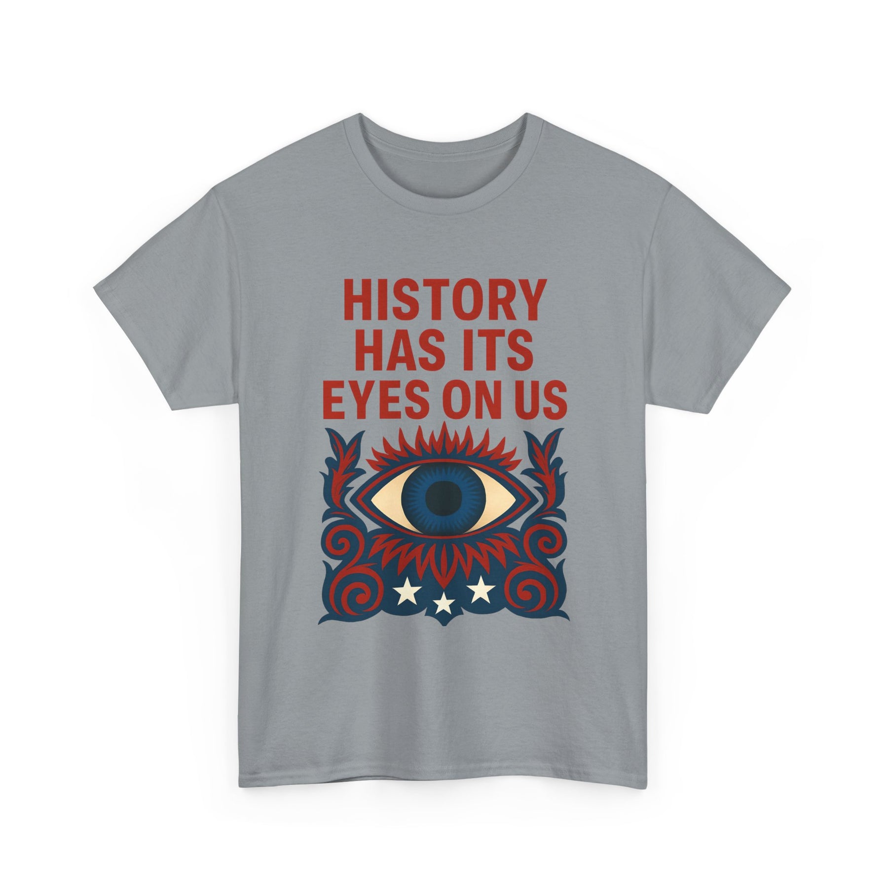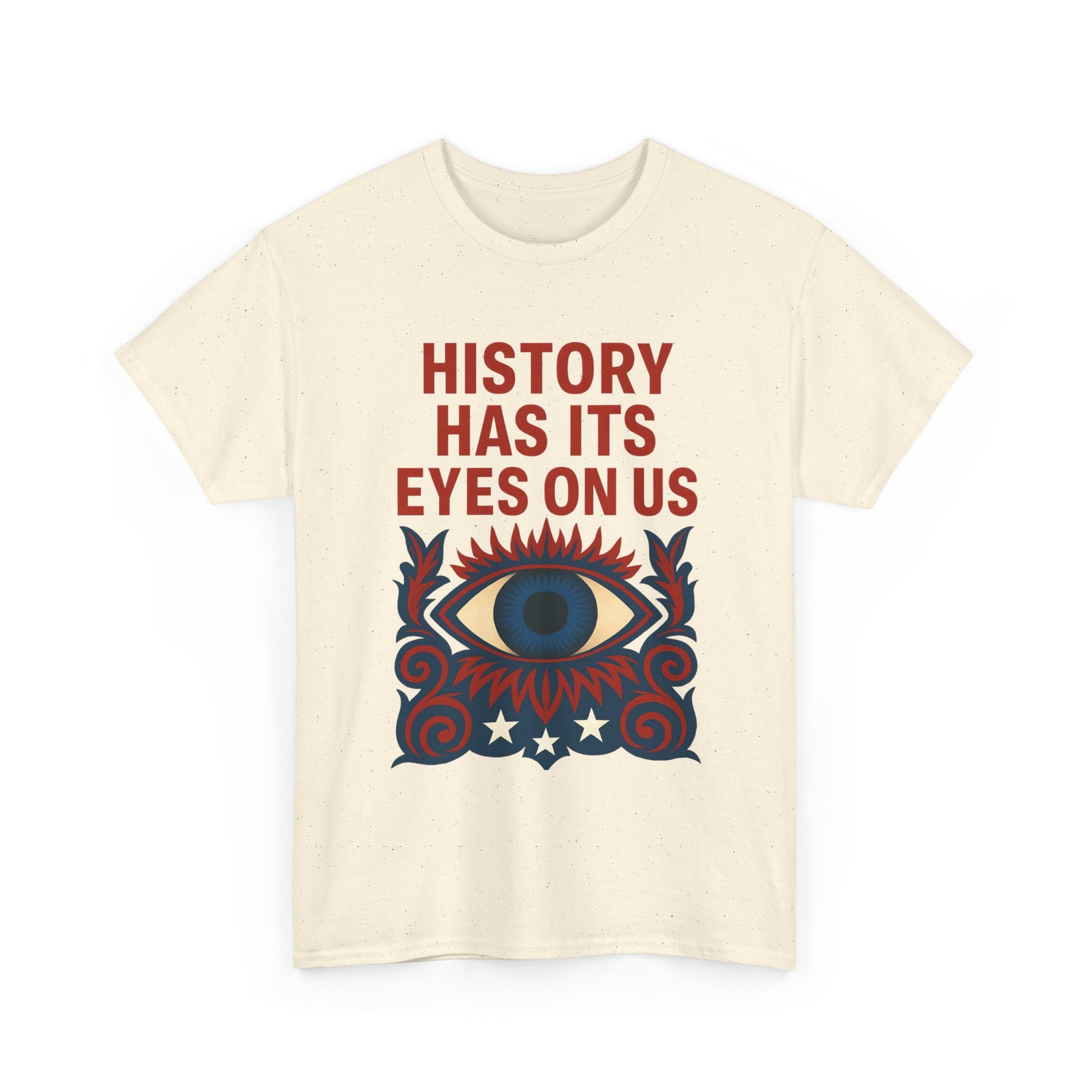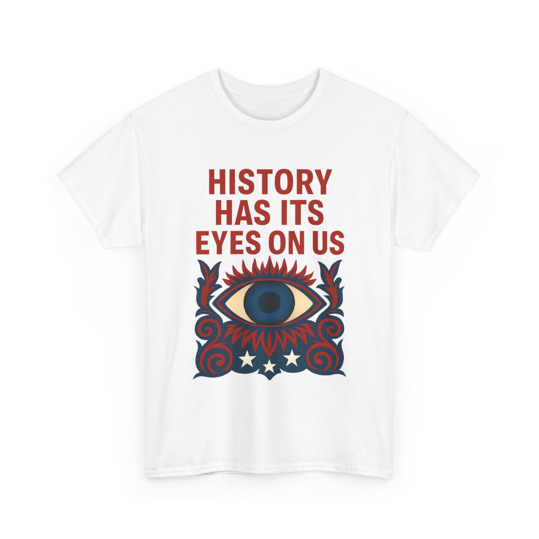 Bold and unflinching, this tee reminds us that our actions today shape tomorrow. Featuring a stylized all-seeing eye in red, white, and blue tones, this graphic tee is a rally cry for accountability, justice, and change.