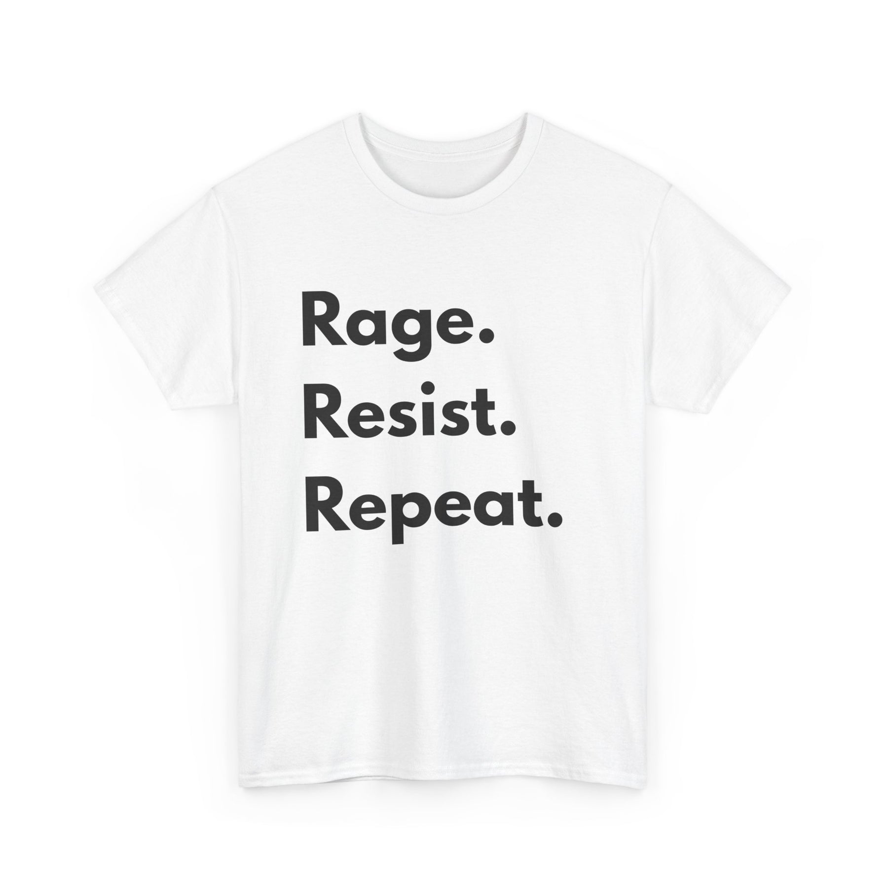Three words. One mission. Endless fight. The Rage Resist Repeat T-Shirt says what needs to be said — no fluff, no filter. Whether you’re marching in the streets, organizing at home, or making your voice heard online, this minimalist tee amplifies your message with power and purpose.