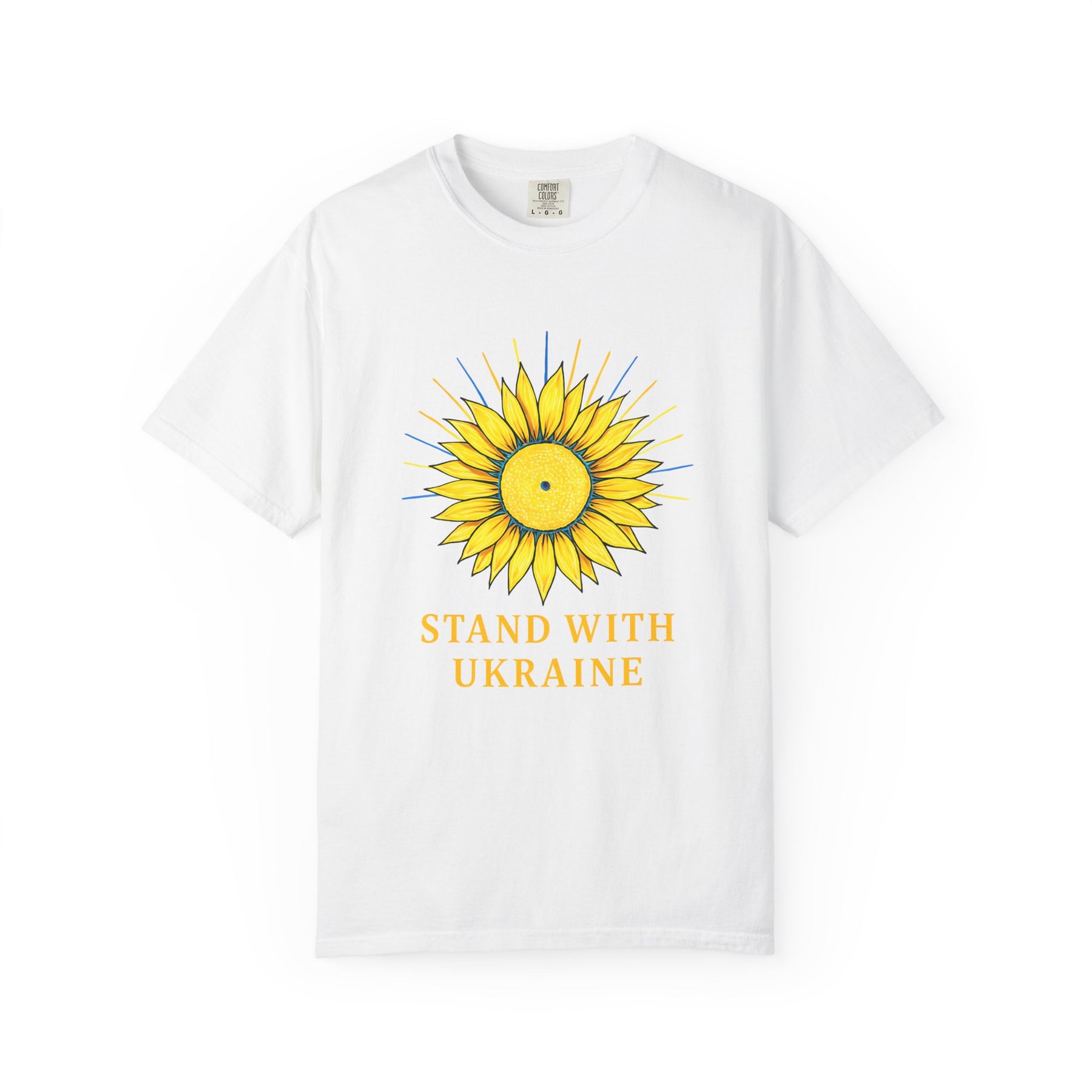 Show your support and stand in solidarity with Ukraine with this meaningful sunflower graphic t-shirt. Featuring a bold sunflower design with the words “Stand With Ukraine”, this unisex tee is more than just clothing—it’s a statement of unity, peace, and strength.
