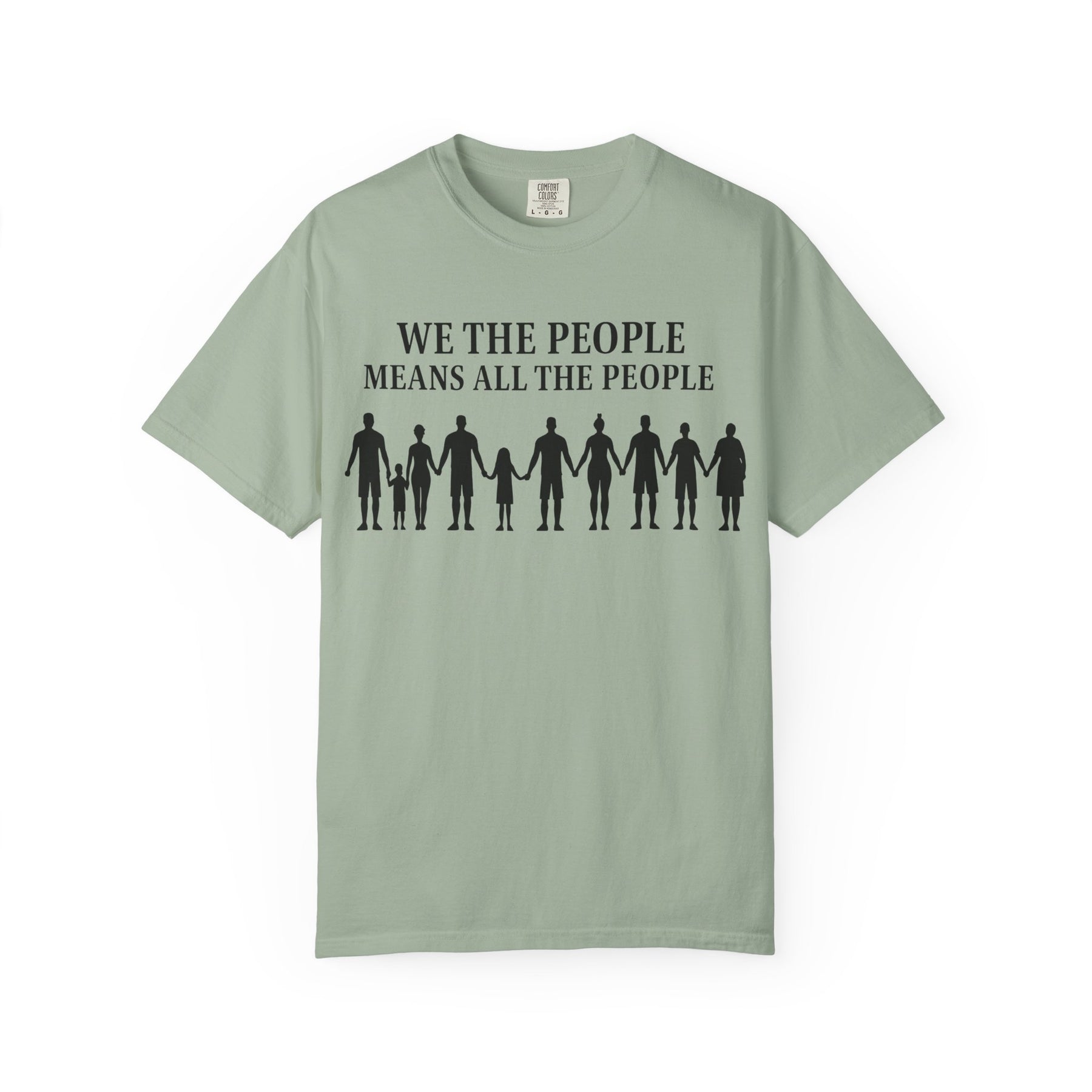 Make your voice heard with the We The People Means All The People T-Shirt — a bold, inclusive design celebrating equality, unity, and justice for everyone. Featuring a diverse silhouette of people holding hands, this activist tee promotes solidarity and pride in the belief that democracy truly means all.