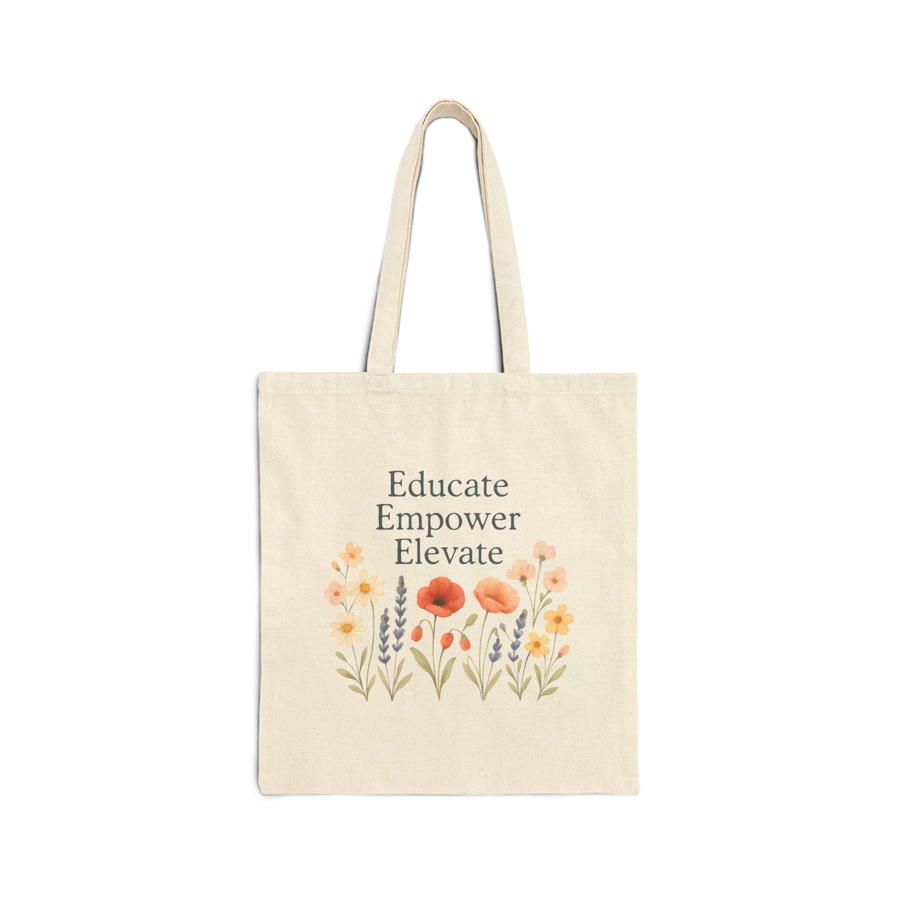 Educate Empower Elevate Tote Bag – Inspirational Floral Reusable Shopping Bag
