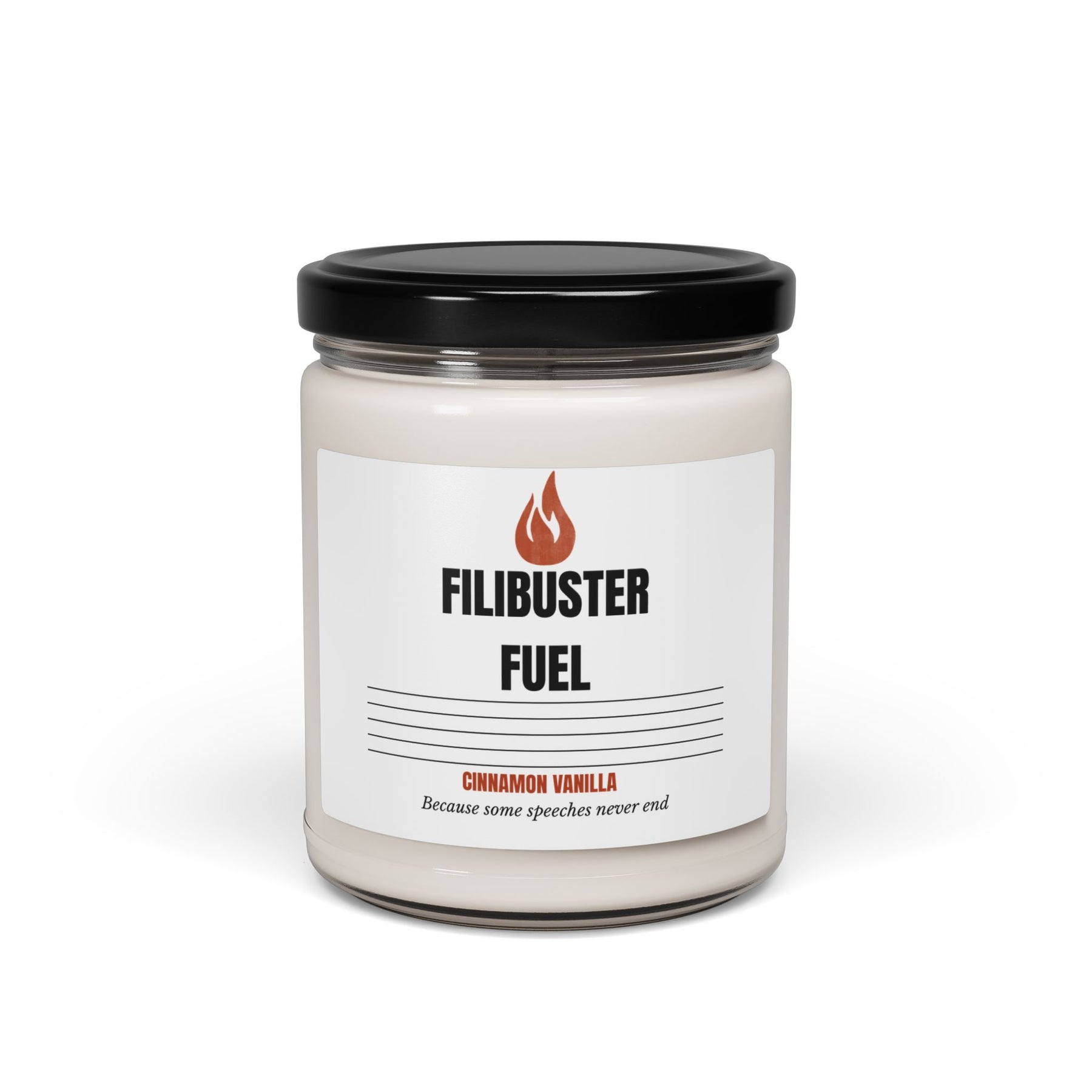 Spicy cinnamon meets creamy vanilla in this satirical scent for the long-winded moments in life. Perfect for political junkies, debate watchers, or anyone who's heard "I'll be brief" and knew it was a lie. 9oz Diameter, in 2.80 Height, in 3.50 Indulge in the warm embrace of our scented soy candle, perfect for setting a cozy atmosphere in your home. With a variety of enticing scents, each candle not only adds fragrance but also a decorative touch to any space. Picture yourself unwinding after a long day, enveloped by the soothing notes of Cinnamon Vanilla or the refreshing aroma of Sea Salt + Orchid. Ideal for anyone who appreciates eco-friendly products, this candle is a great gift for friends, family, or even yourself. Perfect for holidays like Christmas or special moments like housewarming parties, it's a thoughtful way to bring warmth and comfort to any occasion. Product features - Eco-friendly and non-toxic: Made from natural ingredients without harmful chemicals. - Reusable glass vessel: After burning, the elegant glass jar can be repurposed as home decor. - Diverse scent options: Choose from multiple fragrances, including seasonal favorites and soothing blends. - Long burning time: Enjoy up to 60 hours of delightful fragrance with proper care. - Crafted in the USA: Assembled with care from globally sourced materials. Care instructions - Keep burning candle within sight. Keep away from children and pets. Never burn the candle near flammable items.
