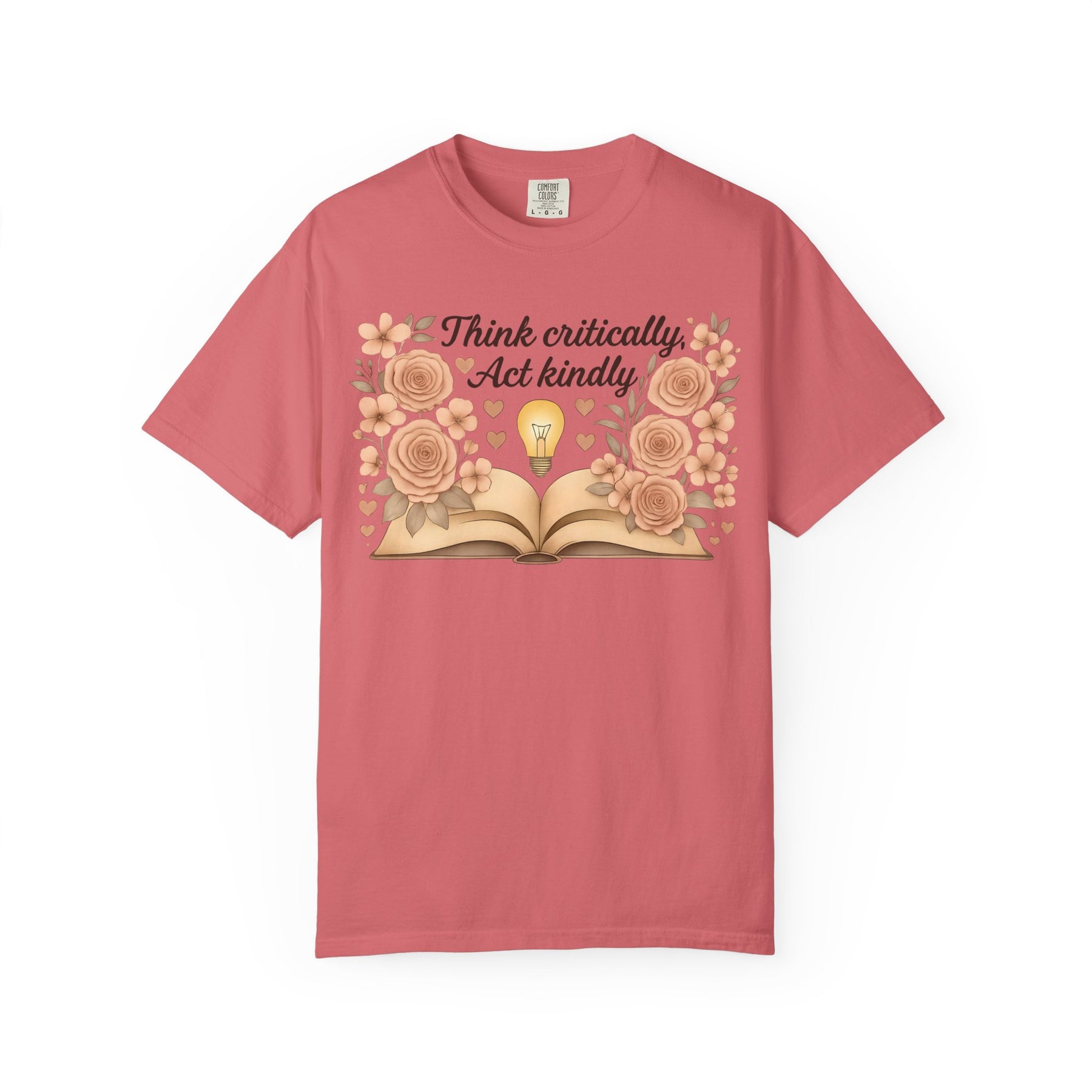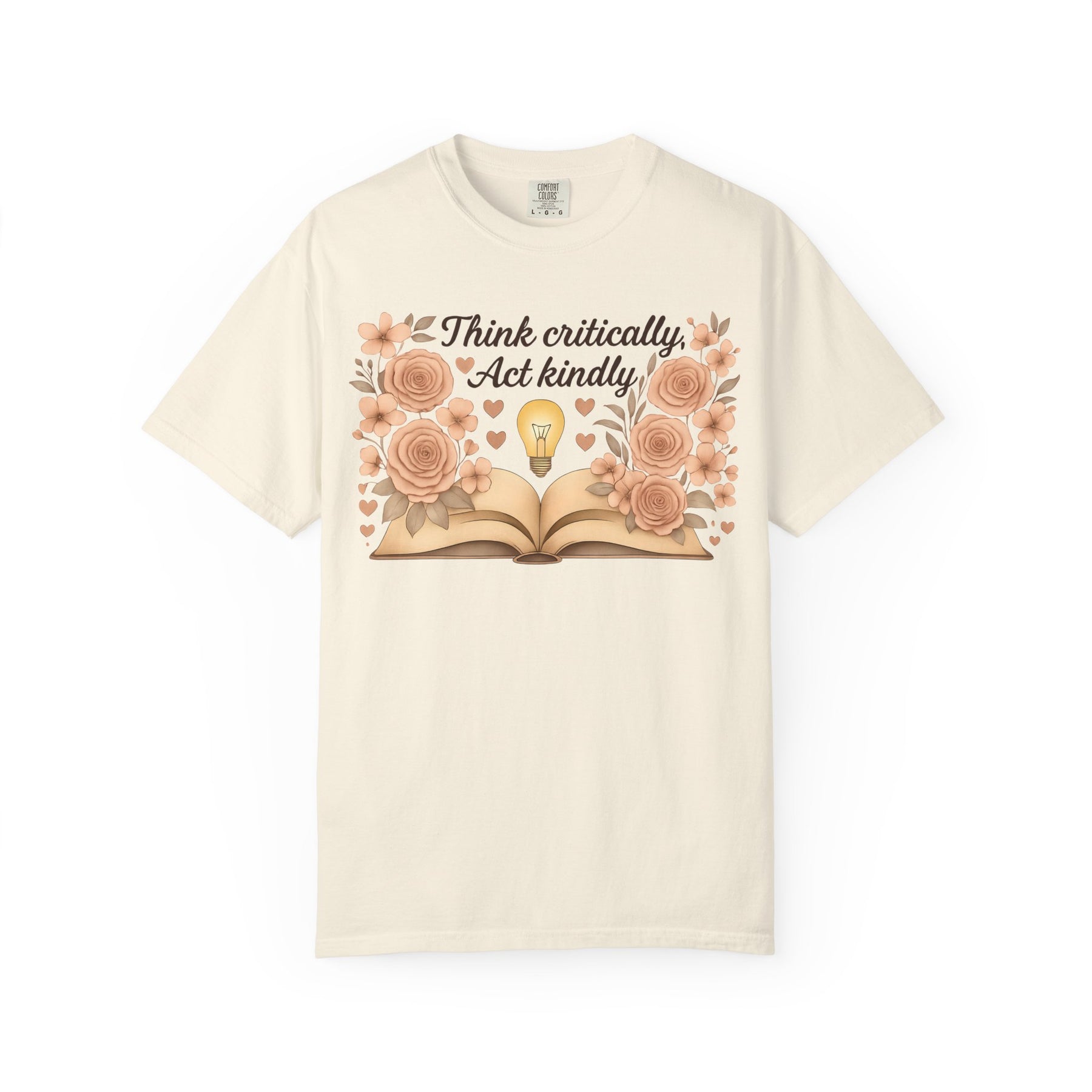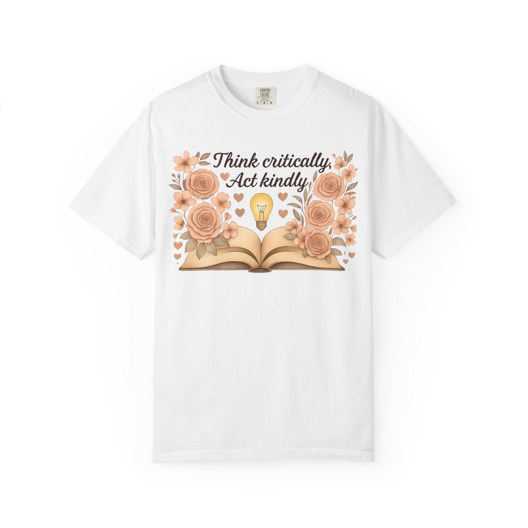 π Think Critically. Act Kindly. This beautifully designed tee combines the power of knowledge with the importance of compassion. Featuring a soft floral arrangement, an open book, and a glowing lightbulb, itβs a gentle reminder to lead with both your heart and your head. πΈ Design Features: β Hand-drawn pastel florals surrounding an open book β Scripted quote: βThink critically. Act kindly.β β Warm beige, blush, and earthy tones for a soft, boho aesthetic β Glowing lightbulb symbolizing insight and learning π‘ Perfect For: β Teachers, students, and lifelong learners β Feminist book clubs and reader activists β Mindful living & educational spaces β Gifts for kind-hearted thinkers and thoughtful leaders π Shirt Details: β Unisex sizing, relaxed fit β flattering on all body types β Super soft cotton/poly blend β Durable print with eco-friendly ink β Machine wash cold, inside out π§ β€οΈ Wear your values: wisdom + empathy.
